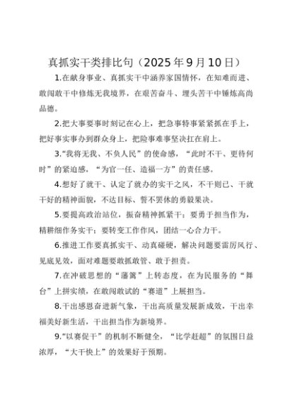 【七哥公文】2025年:真抓实干类排比句(2025年9月10日)+更多免费公文+VX:QiGeGongWen2024