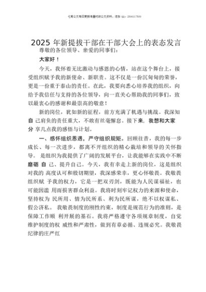 / 【七哥公文】2025年:2025年新提拔干部在干部大会上的表态发言+更多免费公文+VX:QiGeGongWen2024