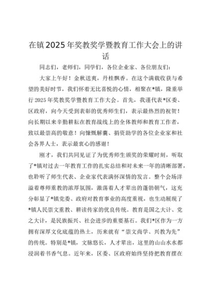 【七哥公文】2025年:在镇2025年奖教奖学暨教育工作大会上的讲话(1)+更多免费公文+VX:QiGeGongWen2024