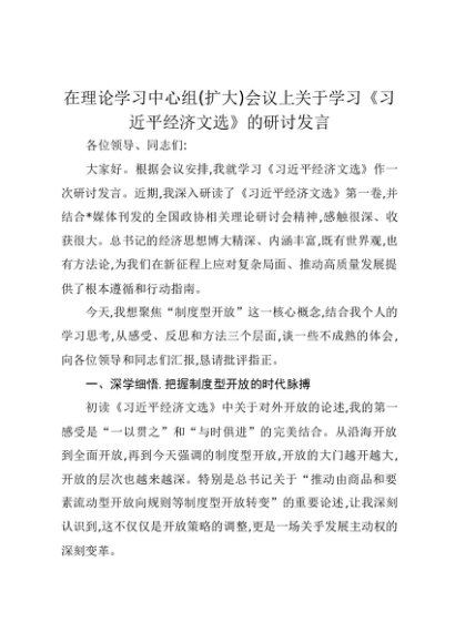 【七哥公文】2025年:在理论学习中心组(扩大)会议上关于学习《习近平经济文选》的研讨发言(1)+更多免费公文+VX:QiGeGongWen2024
