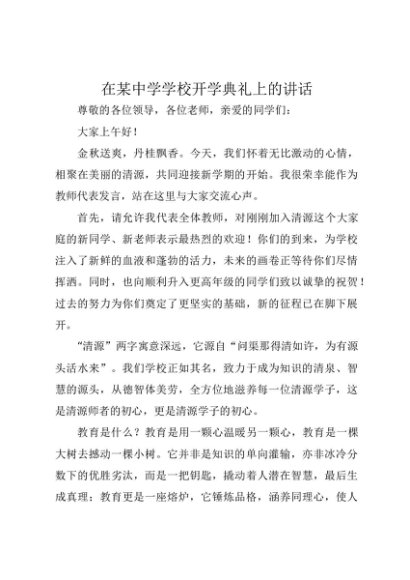 / 【七哥公文】2025年:在某中学学校开学典礼上的讲话+更多免费公文+VX:QiGeGongWen2024