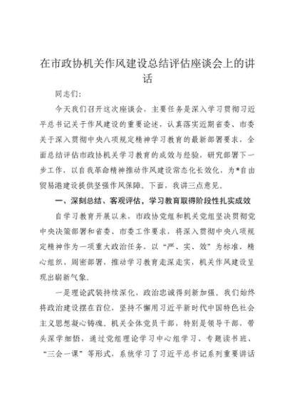 【七哥公文】2025年:在市政协机关作风建设总结评估座谈会上的讲话(1)+更多免费公文+VX:QiGeGongWen2024
