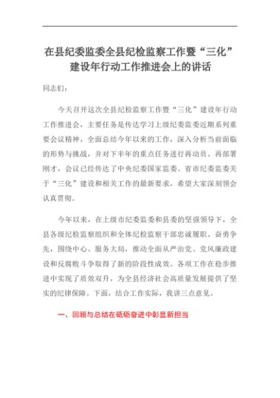 【七哥公文】2025年:在县纪委监委全县纪检监察工作暨“三化”建设年行动工作推进会上的讲话+更多免费公文+VX:QiGeGongWen2024