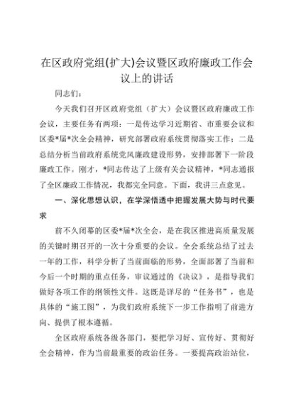 【七哥公文】2025年:在区政府党组(扩大)会议暨区政府廉政工作会议上的讲话+更多免费公文+VX:QiGeGongWen2024
