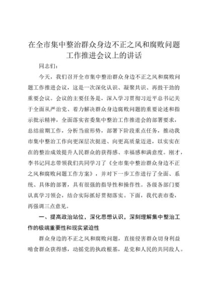 【七哥公文】2025年:在全市集中整治群众身边不正之风和腐败问题工作推进会议上的讲话+更多免费公文+VX:QiGeGongWen2024