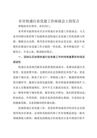 / 【七哥公文】2025年:在市快递行业党建工作座谈会上的发言(1)+更多免费公文+VX:QiGeGongWen2024