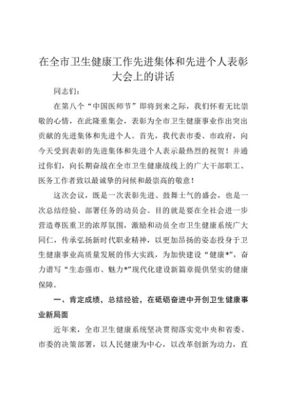 【七哥公文】2025年:在全市卫生健康工作先进集体和先进个人表彰大会上的讲话+更多免费公文+VX:QiGeGongWen2024