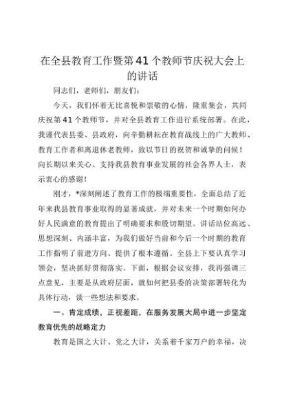 【七哥公文】2025年:在全县教育工作暨第41个教师节庆祝大会上的讲话(1)+更多免费公文+VX:QiGeGongWen2024