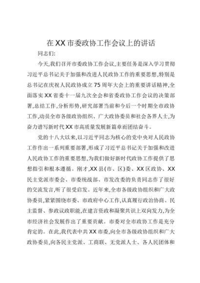 / 【七哥公文】2025年:在XX市委政协工作会议上的讲话(1)+更多免费公文+VX:QiGeGongWen2024