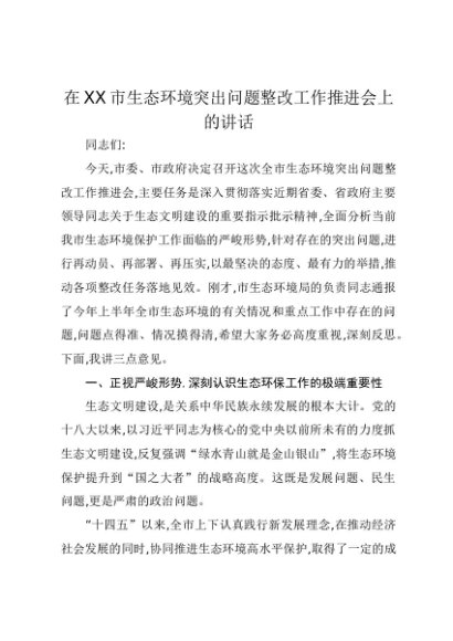 / 【七哥公文】2025年:在XX市生态环境突出问题整改工作推进会上的讲话+更多免费公文+VX:QiGeGongWen2024