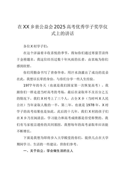 【七哥公文】2025年:在XX乡亲公益会2025高考优秀学子奖学仪式上的讲话+更多免费公文+VX:QiGeGongWen2024