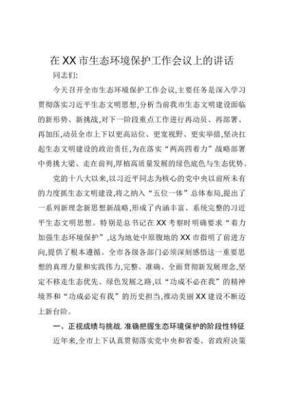 / 【七哥公文】2025年:在XX市生态环境保护工作会议上的讲话+更多免费公文+VX:QiGeGongWen2024