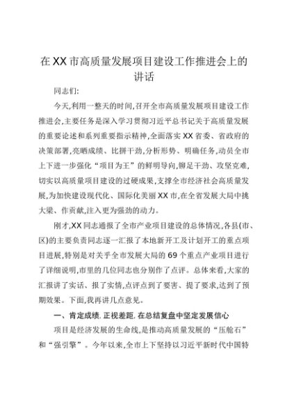 【七哥公文】2025年:在XX市高质量发展项目建设工作推进会上的讲话(1)+更多免费公文+VX:QiGeGongWen2024