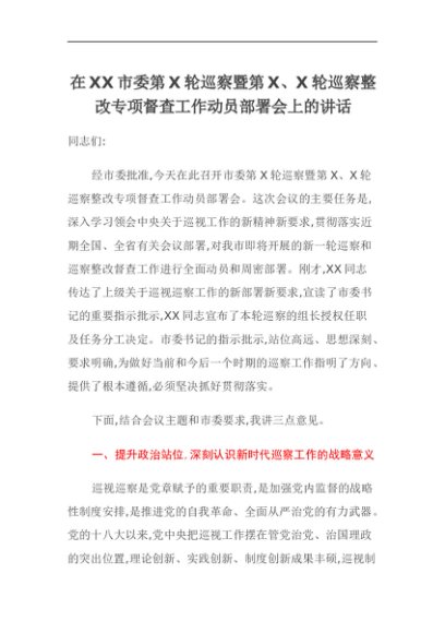 【七哥公文】2025年:在XX市委第X轮巡察暨第X、X轮巡察整改专项督查工作动员部署会上的讲话+更多免费公文+VX:QiGeGongWen2024