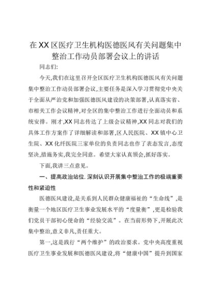 【七哥公文】2025年:在XX区医疗卫生机构医德医风有关问题集中整治工作动员部署会议上的讲话(1)+更多免费公文+VX:QiGeGongWen2024
