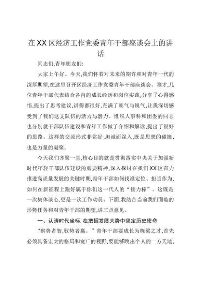 【七哥公文】2025年:在XX区经济工作党委青年干部座谈会上的讲话(1)+更多免费公文+VX:QiGeGongWen2024