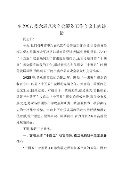 / 【七哥公文】2025年:在XX市委六届八次全会筹备工作会议上的讲话+更多免费公文+VX:QiGeGongWen2024
