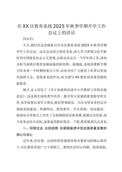 【七哥公文】2025年:在XX区教育系统2025年秋季学期开学工作会议上的讲话(1)+更多免费公文+VX:QiGeGongWen2024