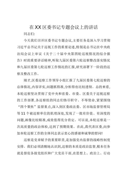 / 【七哥公文】2025年:在XX区委书记专题会议上的讲话(1)+更多免费公文+VX:QiGeGongWen2024