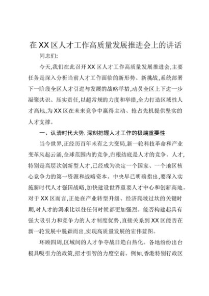 / 【七哥公文】2025年:在XX区人才工作高质量发展推进会上的讲话(1)+更多免费公文+VX:QiGeGongWen2024
