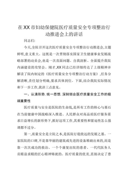【七哥公文】2025年:在XX市妇幼保健院医疗质量安全专项整治行动推进会上的讲话(1)+更多免费公文+VX:QiGeGongWen2024