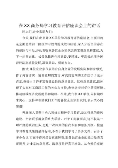 / 【七哥公文】2025年:在XX商务局学习教育评估座谈会上的讲话+更多免费公文+VX:QiGeGongWen2024