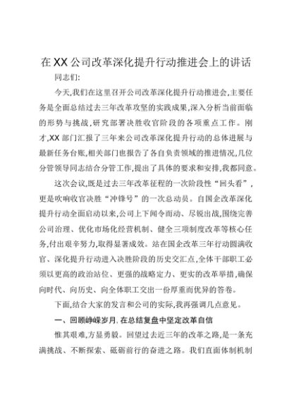 / 【七哥公文】2025年:在XX公司改革深化提升行动推进会上的讲话+更多免费公文+VX:QiGeGongWen2024