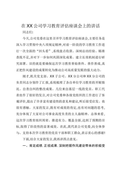 【七哥公文】2025年:在XX公司贯彻中央八项规定精神学习教育评估座谈会上的讲话+更多免费公文+VX:QiGeGongWen2024