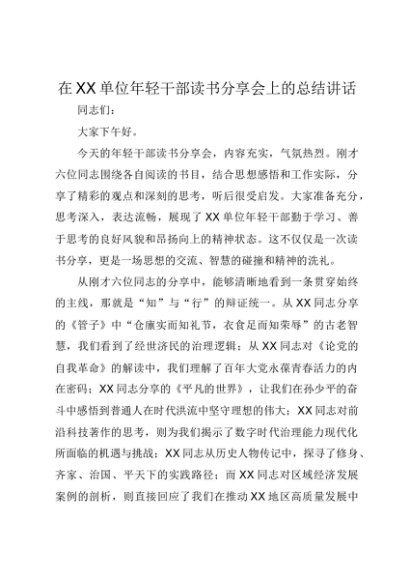 / 【七哥公文】2025年:在XX单位年轻干部读书分享会上的总结讲话+更多免费公文+VX:QiGeGongWen2024