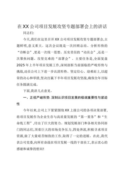 / 【七哥公文】2025年:在XX公司项目发展攻坚专题部署会上的讲话+更多免费公文+VX:QiGeGongWen2024