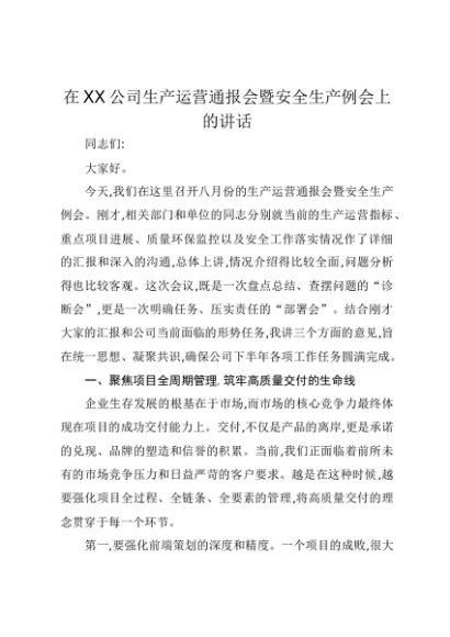 / 【七哥公文】2025年:在XX公司生产运营通报会暨安全生产例会上的讲话+更多免费公文+VX:QiGeGongWen2024