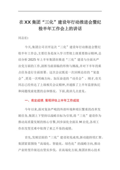 【七哥公文】2025年:在XX集团“三化”建设年行动推进会暨纪检半年工作会上的讲话+更多免费公文+VX:QiGeGongWen2024