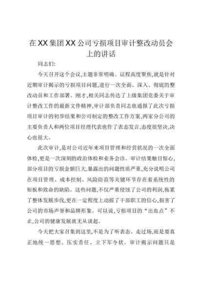 【七哥公文】2025年:在XX集团XX公司亏损项目审计整改动员会上的讲话(1)+更多免费公文+VX:QiGeGongWen2024