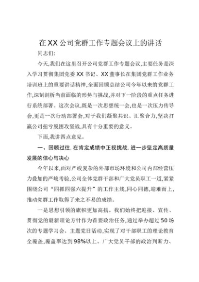 / 【七哥公文】2025年:在XX公司党群工作专题会议上的讲话+更多免费公文+VX:QiGeGongWen2024