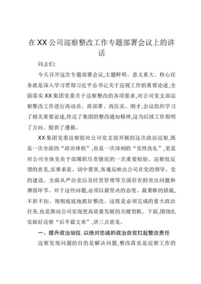 / 【七哥公文】2025年:在XX公司巡察整改工作专题部署会议上的讲话(1)+更多免费公文+VX:QiGeGongWen2024