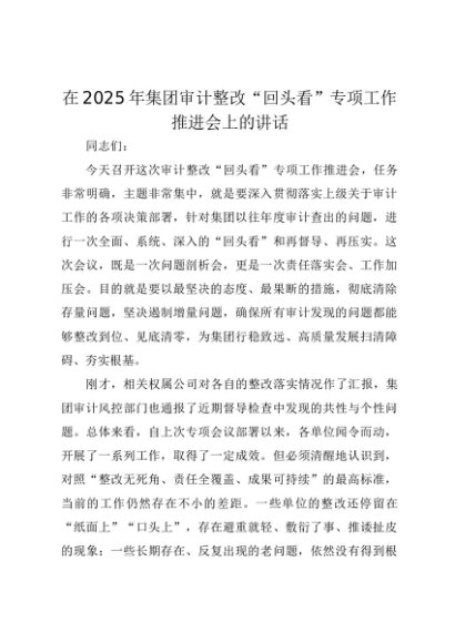 【七哥公文】2025年:在2025年集团审计整改“回头看”专项工作推进会上的讲话(1)+更多免费公文+VX:QiGeGongWen2024
