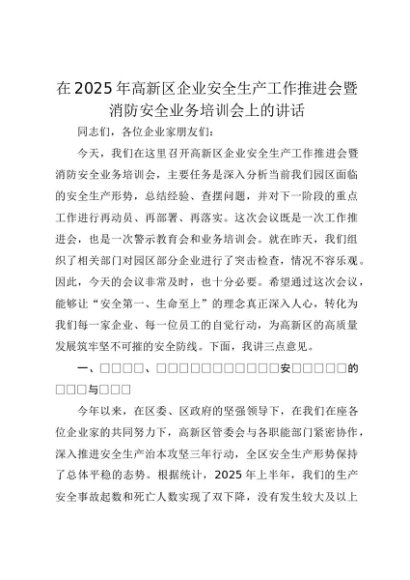 【七哥公文】2025年:在2025年高新区企业安全生产工作推进会暨消防安全业务培训会上的讲话(1)+更多免费公文+VX:QiGeGongWen2024