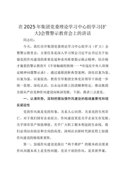 【七哥公文】2025年:在2025年集团党委理论学习中心组学习(扩大)会暨警示教育会上的讲话(1)+更多免费公文+VX:QiGeGongWen2024