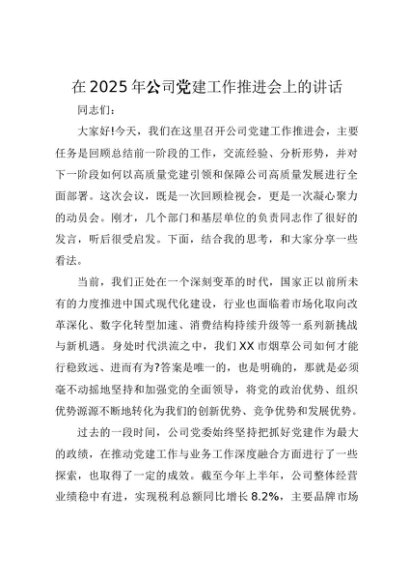 / 【七哥公文】2025年:在2025年公司党建工作推进会上的讲话(1)+更多免费公文+VX:QiGeGongWen2024