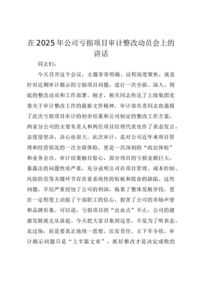【七哥公文】2025年:在2025年公司亏损项目审计整改动员会上的讲话(1)+更多免费公文+VX:QiGeGongWen2024