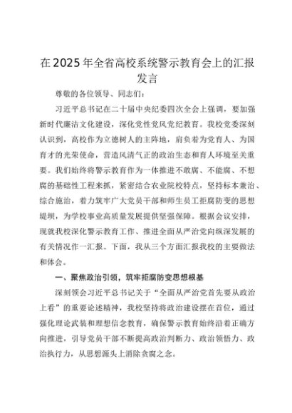 / 【七哥公文】2025年:在2025年全省高校系统警示教育会上的汇报发言+更多免费公文+VX:QiGeGongWen2024