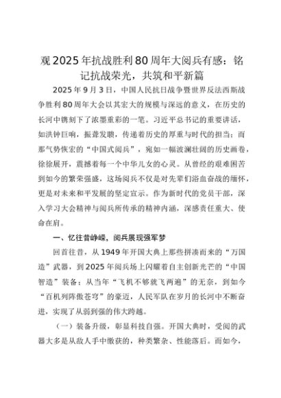 【七哥公文】2025年:观2025年抗战胜利80周年大阅兵有感:铭记抗战荣光,共筑和平新篇(1)+更多免费公文+VX:QiGeGongWen2024