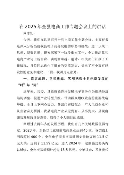 / 【七哥公文】2025年:在2025年全县电商工作专题会议上的讲话+更多免费公文+VX:QiGeGongWen2024