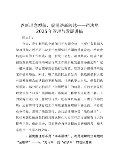 【七哥公文】2025年:以新理念领航,促司法新跨越——司法局2025年管理与发展讲稿(1)+更多免费公文+VX:QiGeGongWen2024