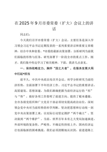 / 【七哥公文】2025年:在2025年9月市委常委(扩大)会议上的讲话+更多免费公文+VX:QiGeGongWen2024
