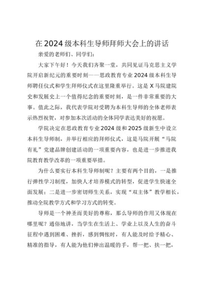 【七哥公文】2025年:在2024级本科生导师拜师大会上的讲话(1)+更多免费公文+VX:QiGeGongWen2024
