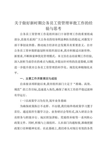 【七哥公文】2025年:调研报告:关于做好新时期公务员工资管理审批工作的经验与思考(1)+更多免费公文+VX:QiGeGongWen2024