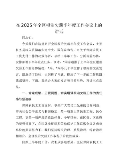 【七哥公文】2025年:在2025年全区根治欠薪半年度工作会议上的讲话(1)+更多免费公文+VX:QiGeGongWen2024