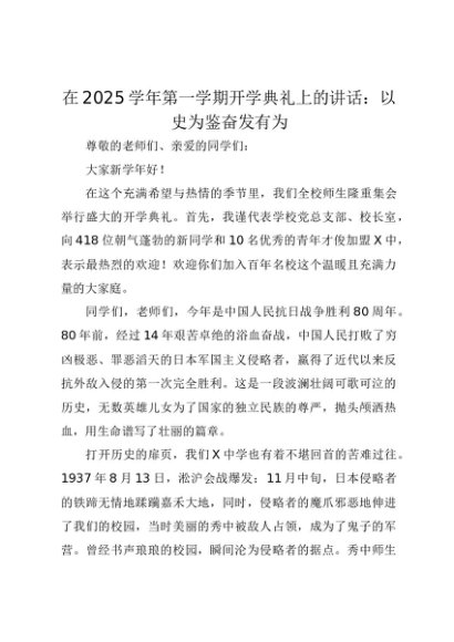 【七哥公文】2025年:在2025学年第一学期开学典礼上的讲话:以史为鉴奋发有为(1)+更多免费公文+VX:QiGeGongWen2024