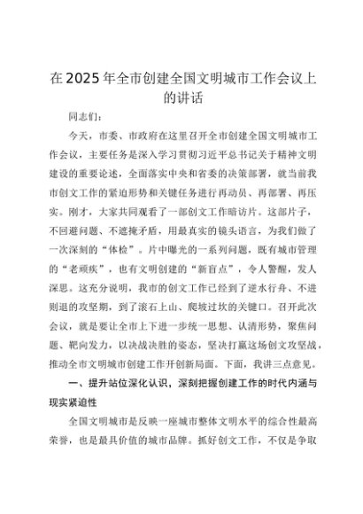 【七哥公文】2025年:在2025年全市创建全国文明城市工作会议上的讲话(1)+更多免费公文+VX:QiGeGongWen2024